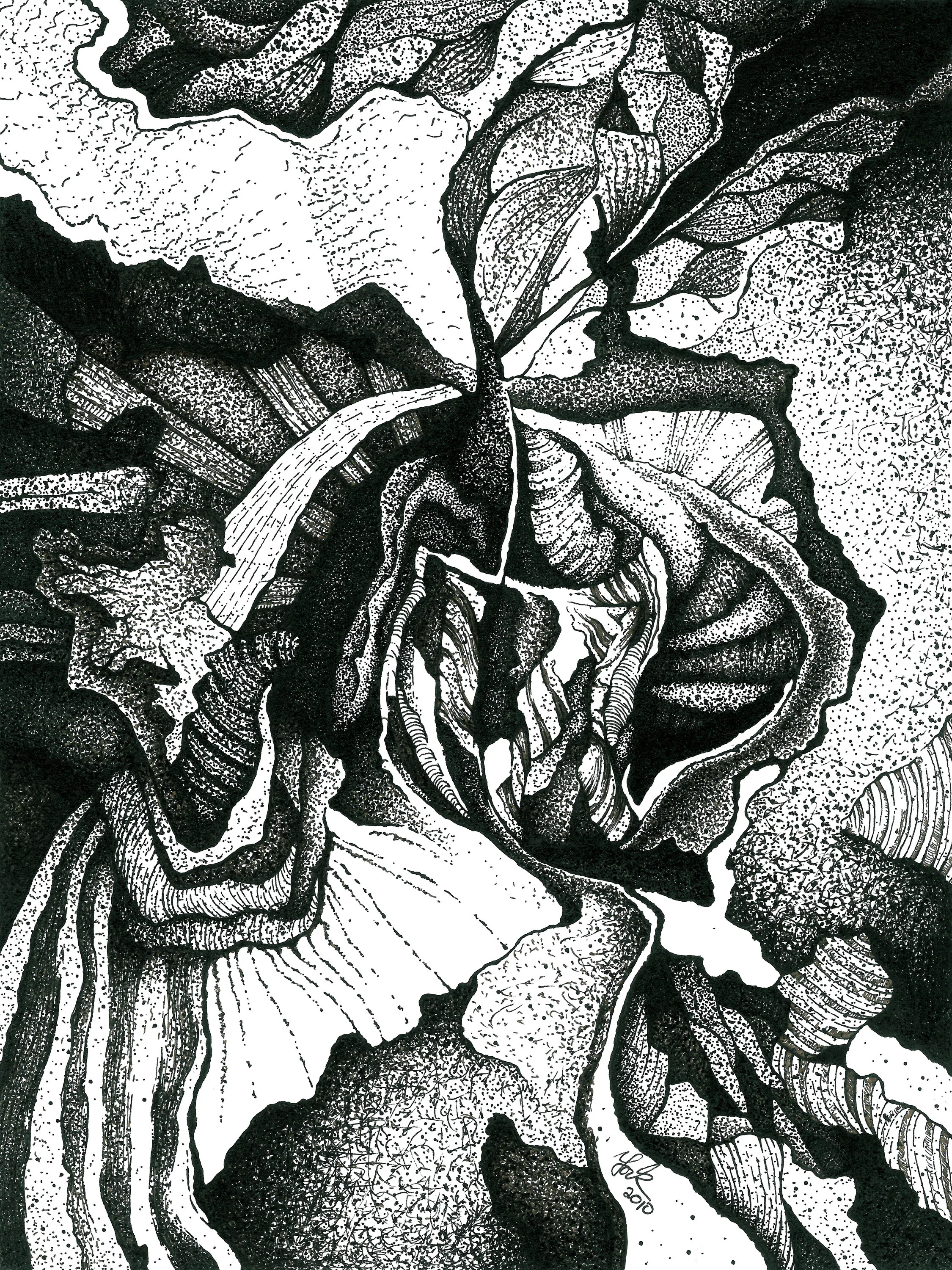 With a Gun and a Pack of Sandwiches | 12 in x 9 in | Ink Drawing